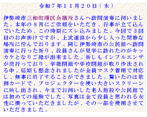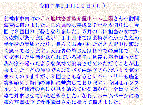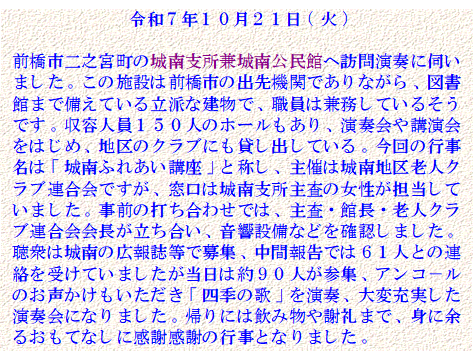 訪問演奏(慰問)等について ↓ ![]() ![]() ![]() |